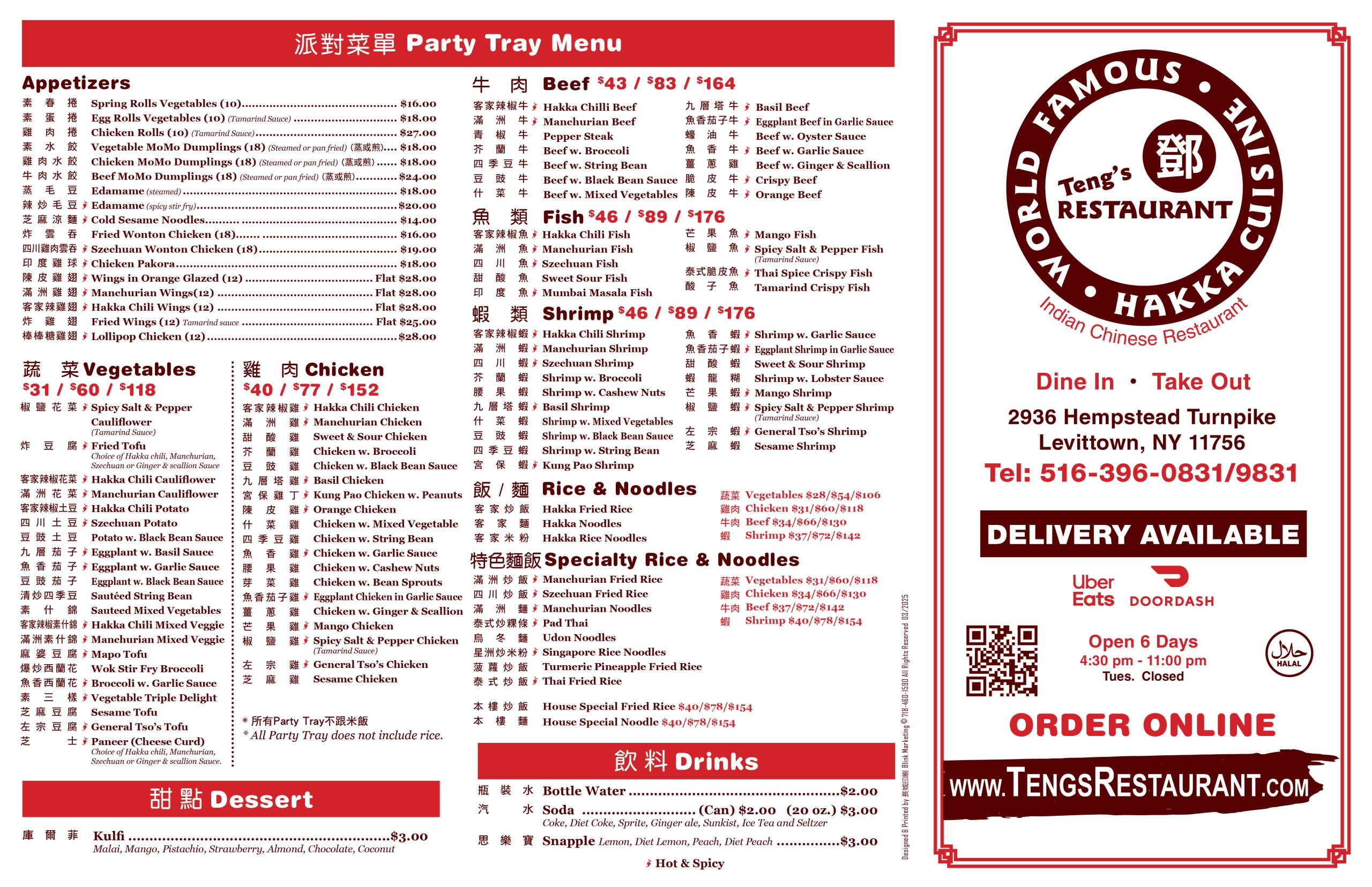 Contact UsVISIT US2936 Hempstead Tpke Levittown, NY 11756EMAIL UStengsrestaurant@gmail.comCALL US(516) 396-0831 (516) 396-9831Stay in Touch Name Email Address Message 3 + 1 = Submit Tengs